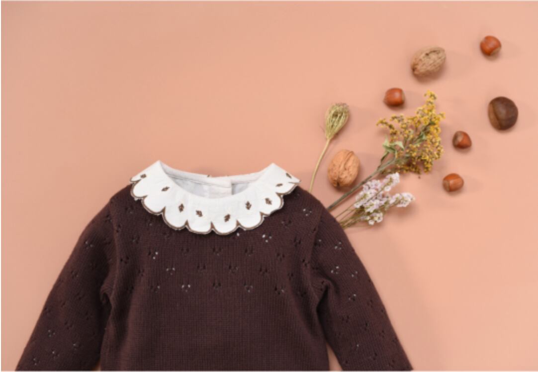 フレアカットとフリルの可愛らしい襟に、フロントに逆プリーツをあしらいました。